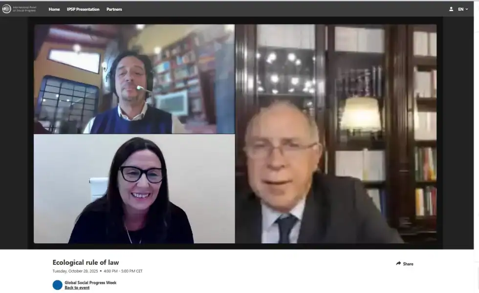 La profesora Blanca Soro Mateo, miembro de UMU-CEBES, participó en la sesión dedicada a “El Estado Ecológico de Derecho”, organizada por el International Panel on Social Progress (IPSP) en el marco de la Global Social Progress Week. En la sesión intervino también el Dr. Ricardo Lorenzetti, reconocido jurista y referente internacional en el ámbito del derecho ambiental y la sostenibilidad.