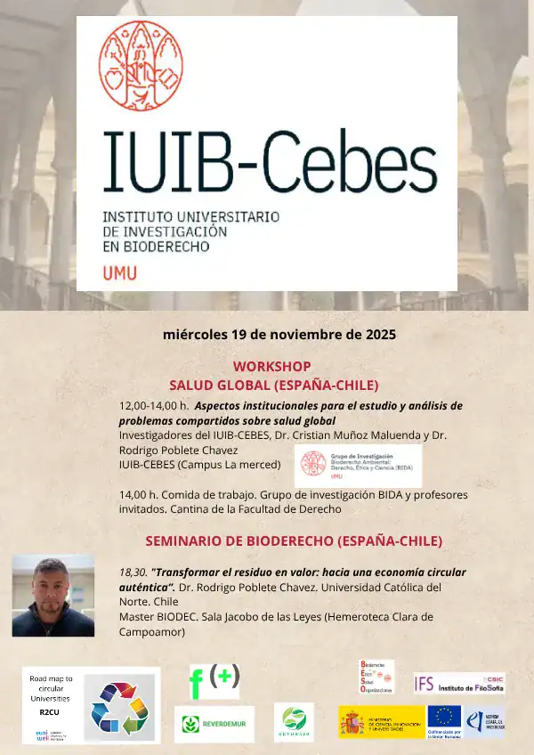El Instituto Universitario de Investigación en Bioética (IUIB–CEBES) celebra una nueva jornada académica en colaboración con la Universidad Católica del Norte (Chile), en el marco de las actividades de cooperación científica y formativa entre España y Chile en materia de Bioderecho, Ética y Salud Global.